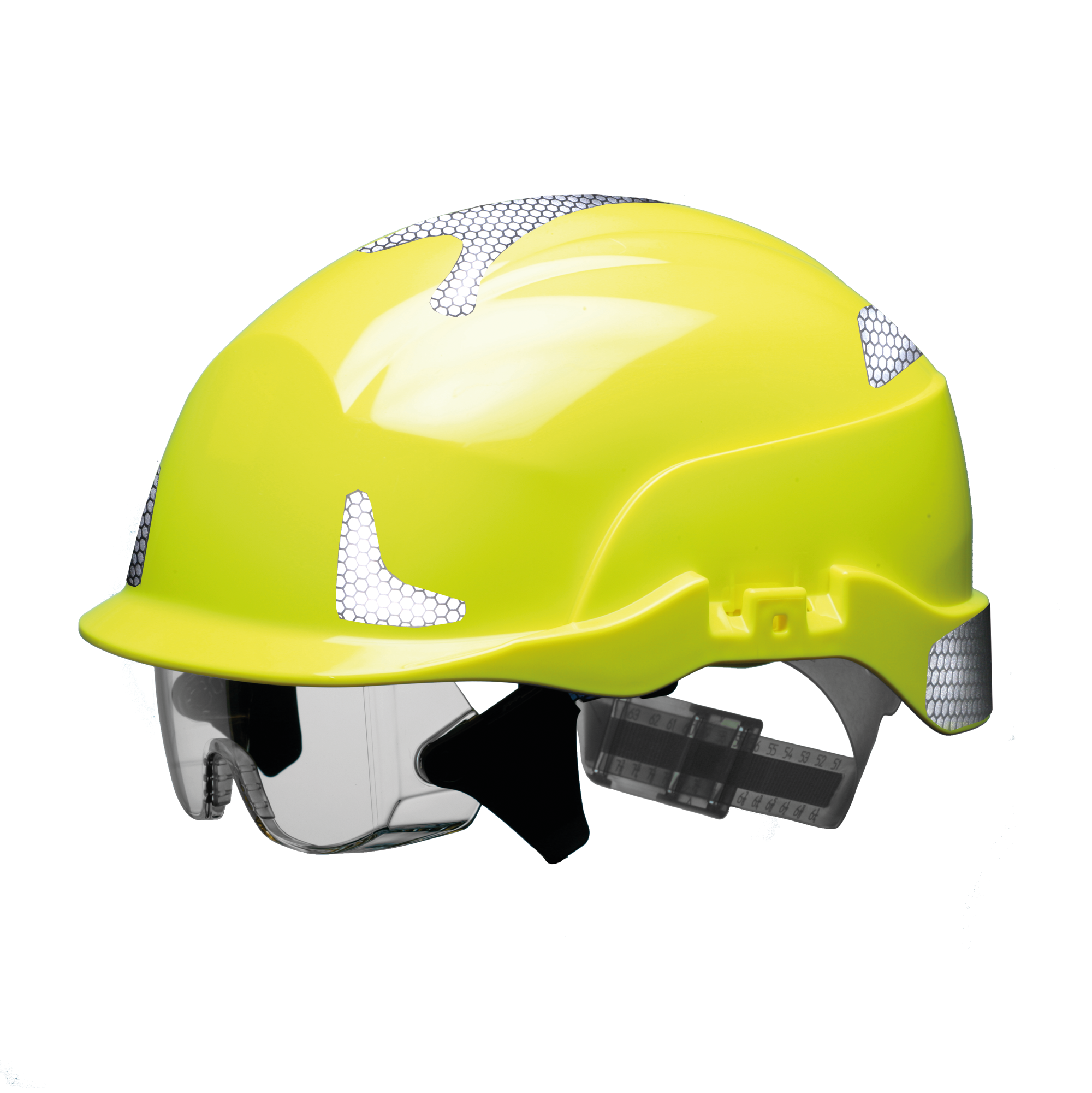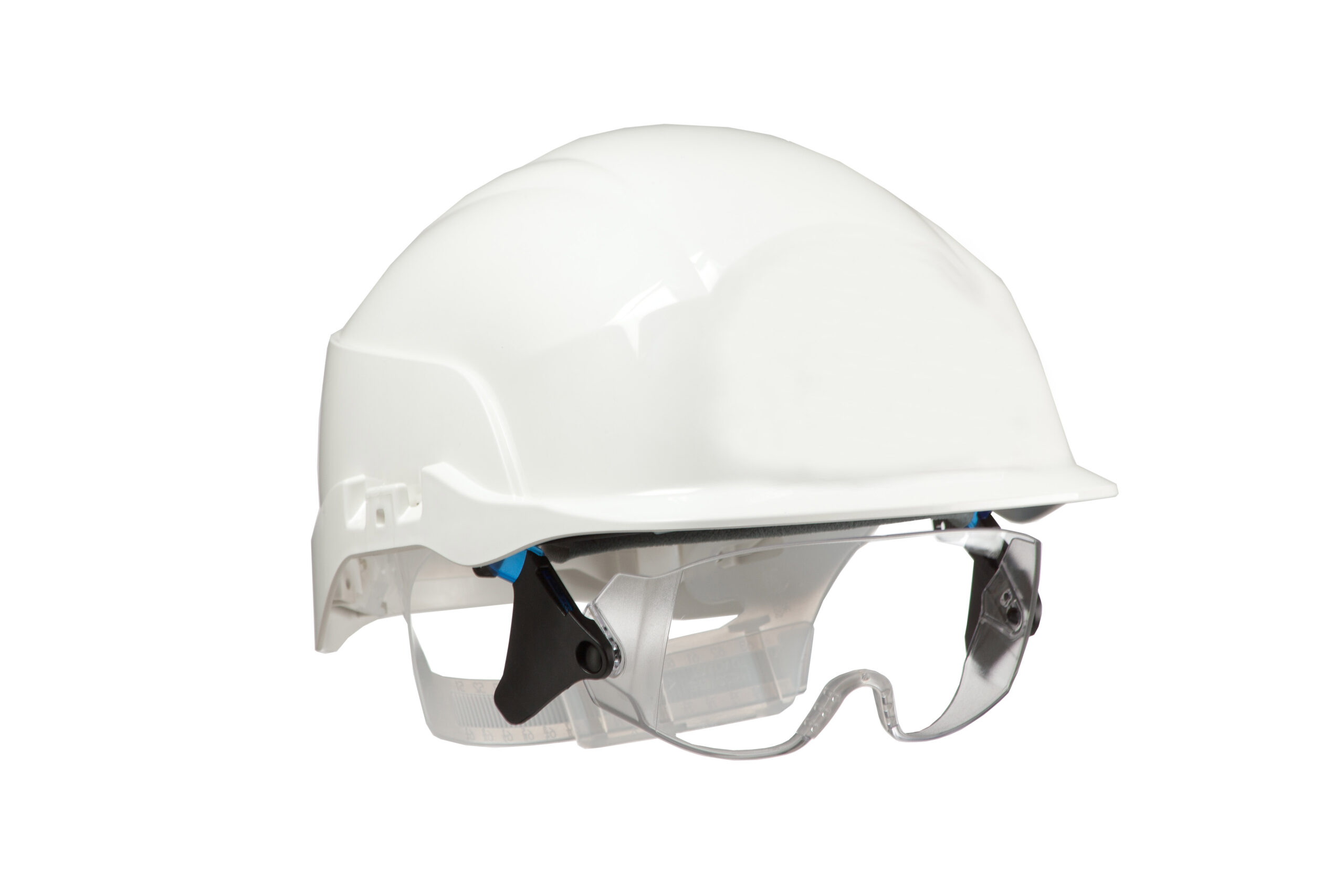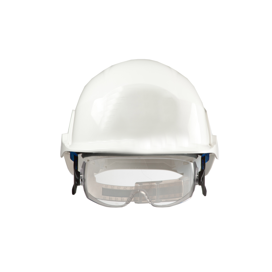 One of our pioneering head protection systems – with integrated over spectacles to deliver grade B medium energy EN 166 impact protection. Suitable for wearers of prescription eyewear.